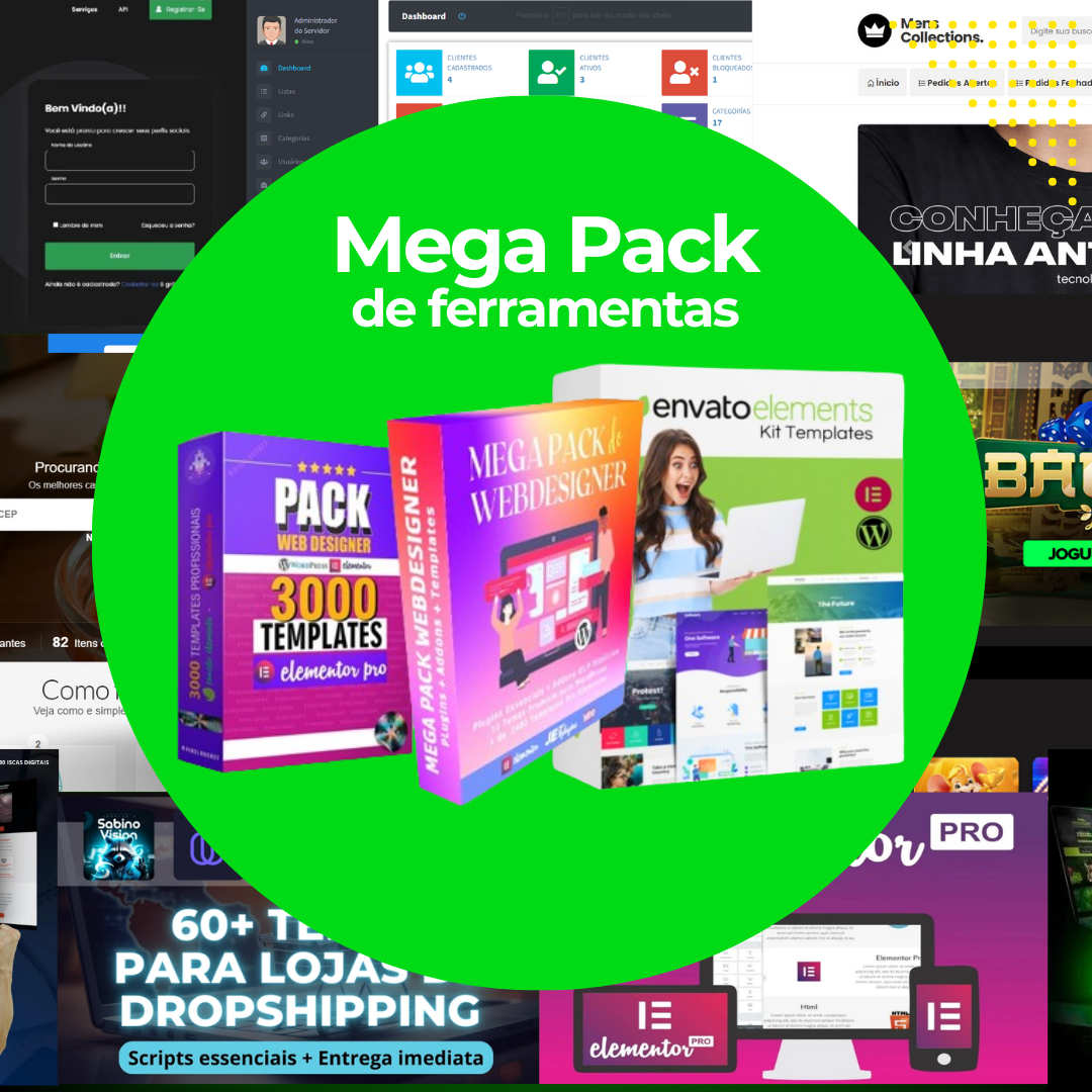 Os melhores scripts, plataformas, ferramentas, sites, landing pages e muito mais, esse pacote é ideal para WEB Designers iniciantes, todos os produtos são premium, testados e funcionais!