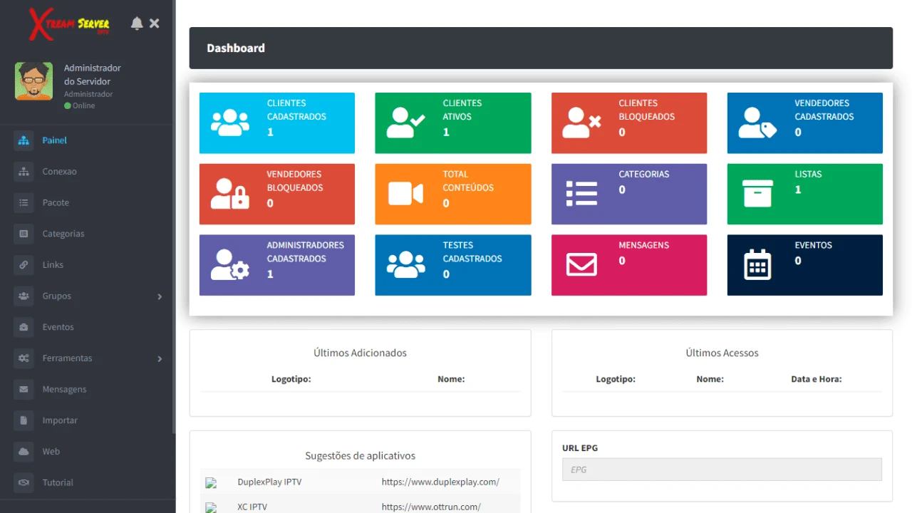 Painel para gerenciamento de IPTV Xtream Server 5.0.4 (Contém Bugs) quantidade