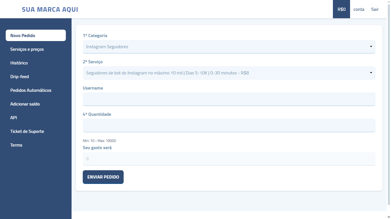 Painel SMM com PIX Automático quantidade