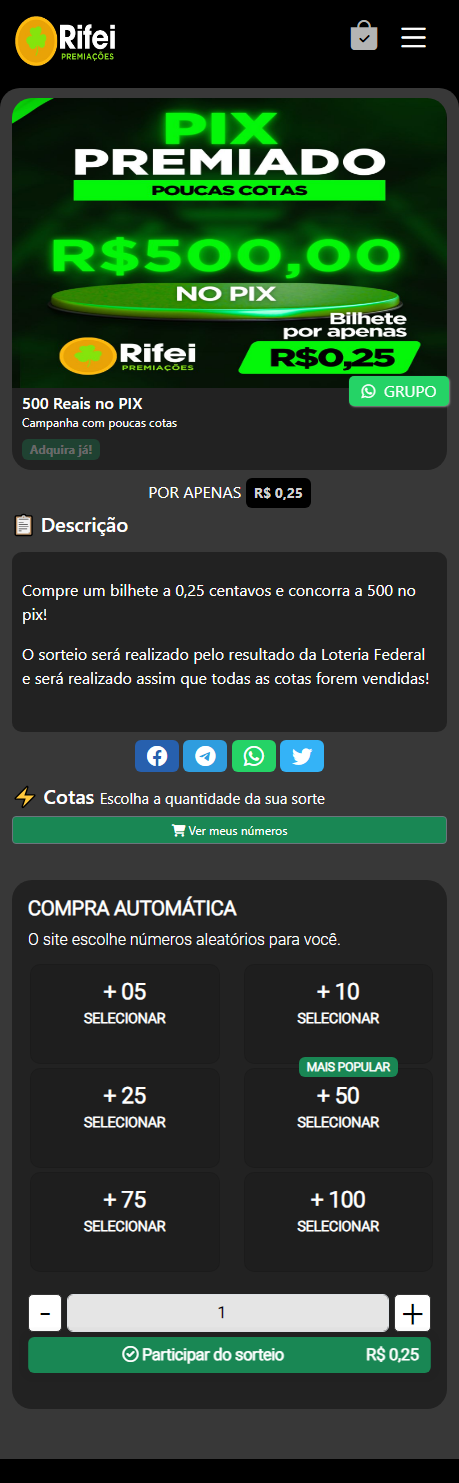 – Capacidade de até 1 milhão de cotas por rifa.
