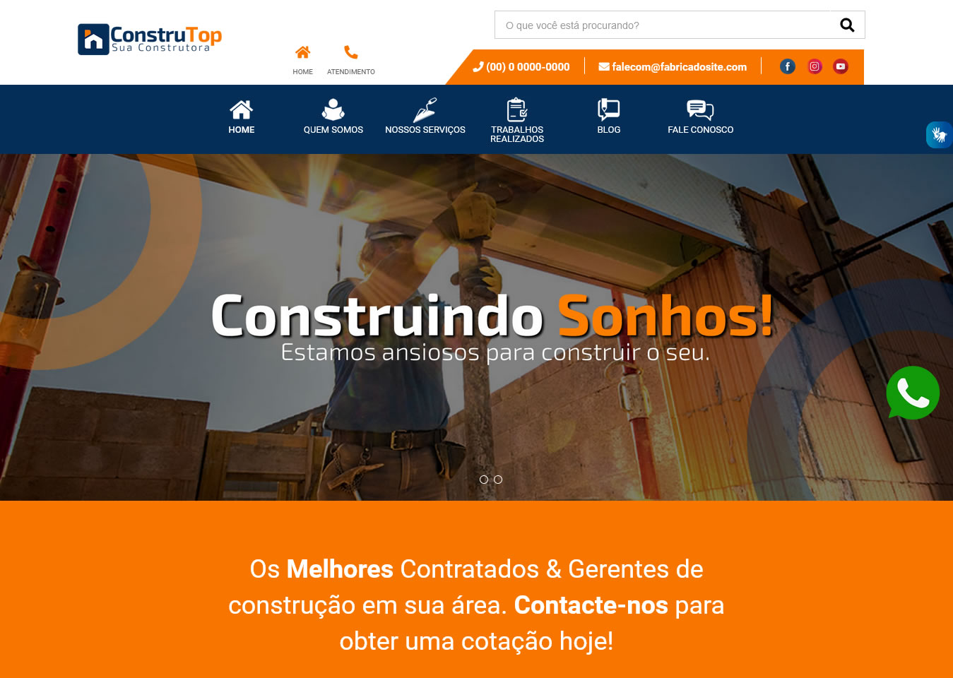 Site Institucional tema construção 100% responsivo em PHP MySQL com Painel Administrador, fácil edição pelo painel, feito em PHP 5.6 a 7.0 MySQL, utilizando os Framework Bootstrap v3.3.7 e Font Awesome 5.7.0 para agiliza maior performance de navegação.