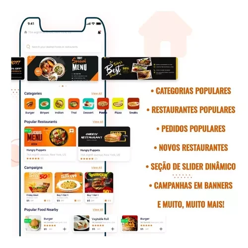 • Seção de marketing para campanhas, banners, cupons e notificações push. Recursos insanos que ajudarão seu negócio a alavancar ainda mais e a desbloquear novos métodos de monetização, via campanhas publicitárias das lojas cadastradas em seu sistema.