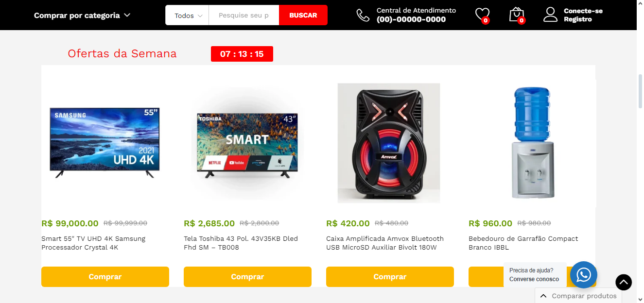 Suas ofertas expostas com contador de tempo na pagina principal, categorias e produtos.